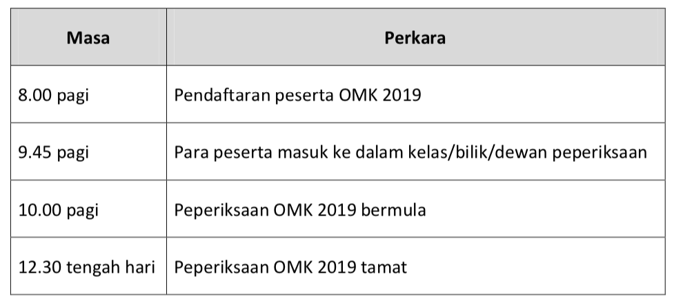 JADUAL PERTANDINGAN OLIMPIAD MATEMATIK KEBANGSAAN 2019 (OMK 2019)