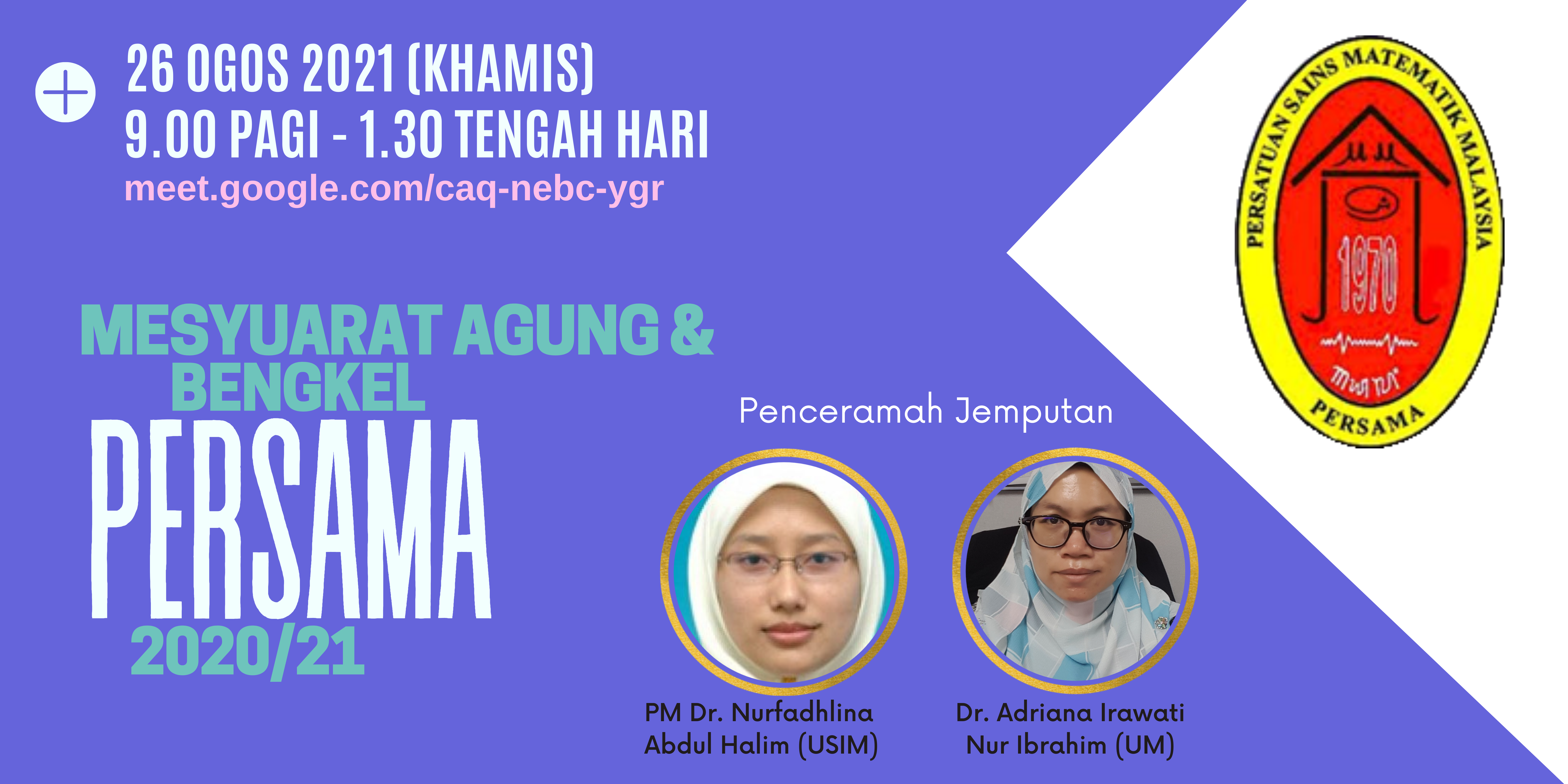 2. Mesyuarat Agung Tahunan Persatuan Sains Matematik Malaysia (PERSAMA) Sesi 2020/2021 akan diadakan seperti butiran berikut: